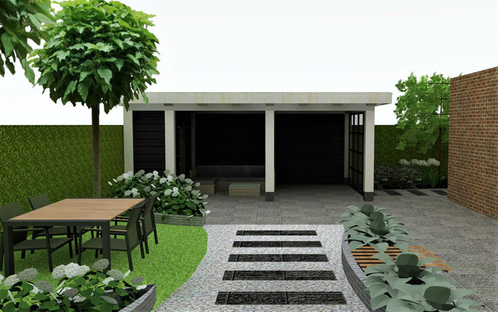 plattegrond op schaal en 3D-tekeningen. Zo krijgt u een goed beeld hoe uw tuin er uit komt te zien.